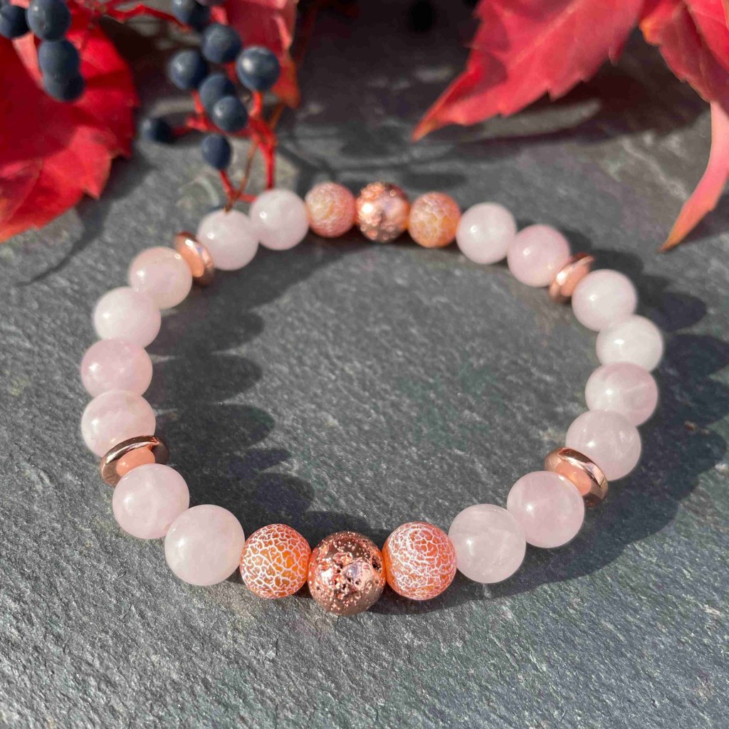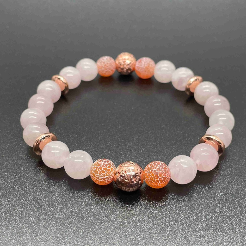 Minerální náramek - Achát, Růženín, pokovená Láva